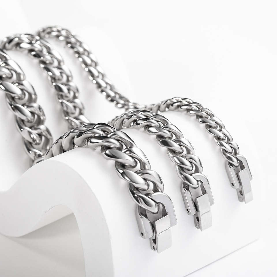 Collier en acier inoxydable plaqué or 18 carats et argent, chaîne cubaine pour homme, plusieurs tailles