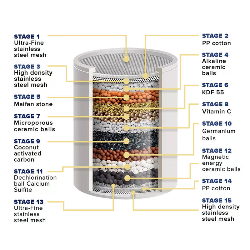 Multi-Stage High Output Shower Water Filter Water Softener Shower Head