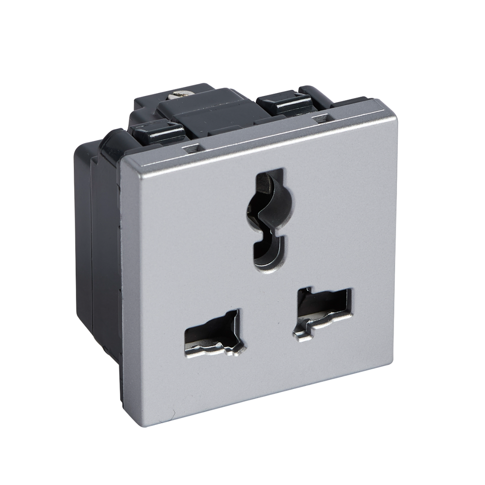 Prise multi-standard 571042 - 2P+E non commutée - à volets - 2 modules - en aluminium