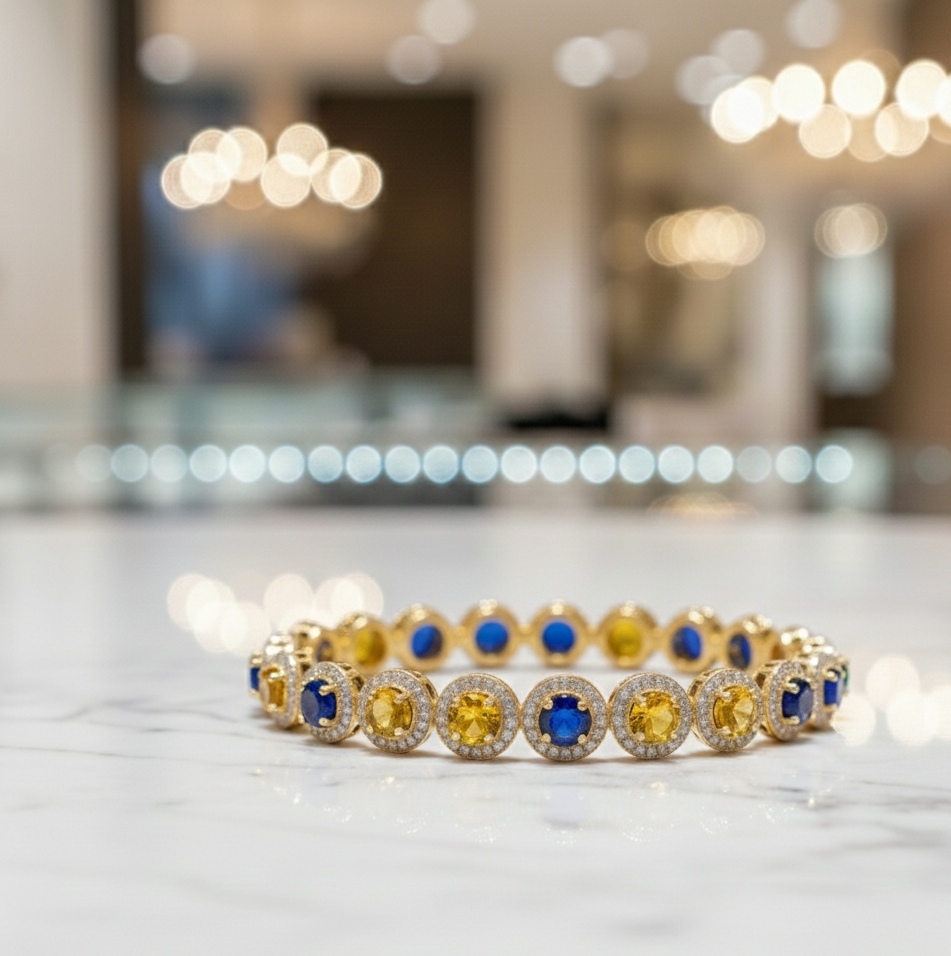 Bracelet jonc multi-pierres CZ en argent sterling 925 plaqué or 18 carats avec pierres précieuses rondes, 15 grammes, bracelet jonc de créateur pour femme