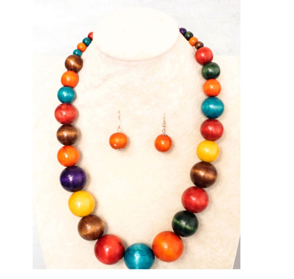 Multi Strand Wooden Beads Short Statement Custom Colored Wood Beads Shaped and Sized Fast Delivery From India