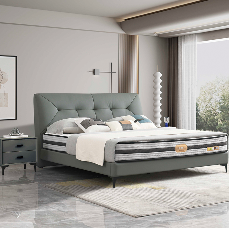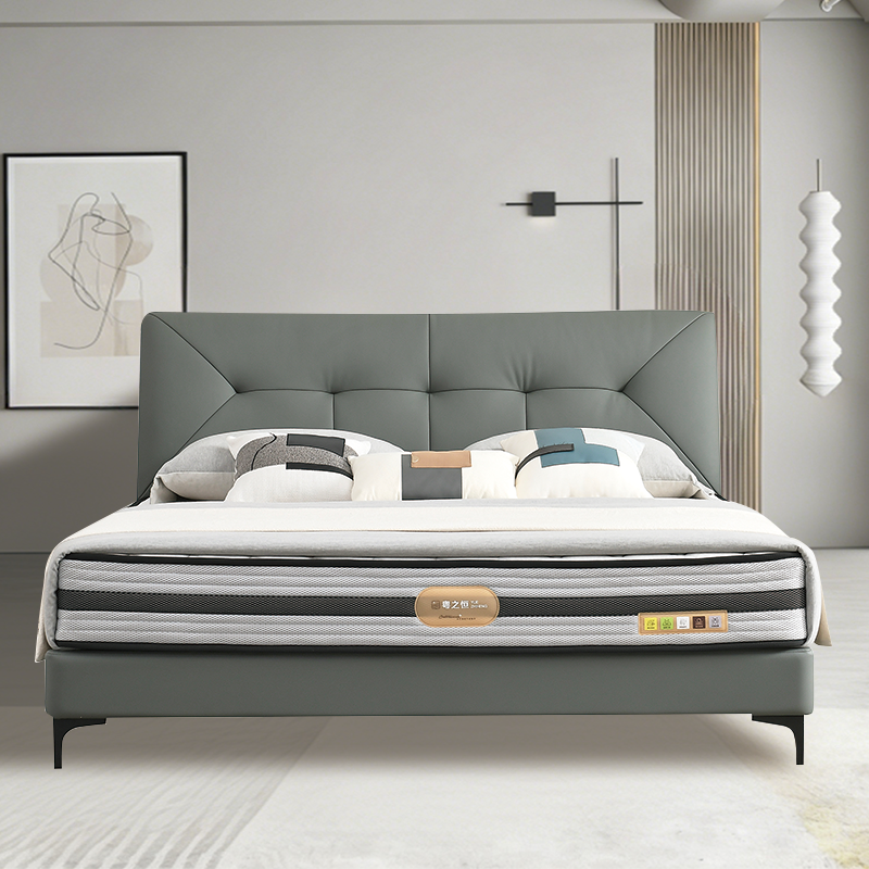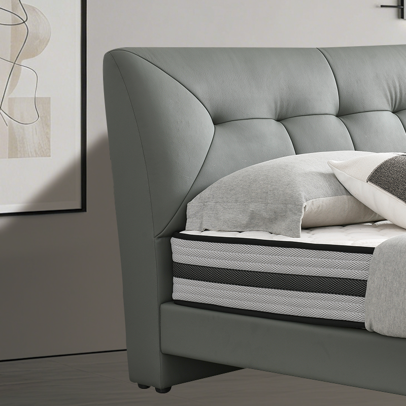 Lit de rangement multi-styles réglable, minimaliste et luxueux, avec revêtement en cuir véritable, structure en acier durable et housse amovible