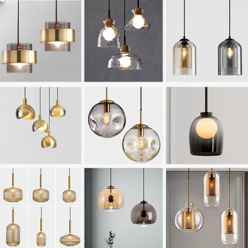 Multi style fumée gris salon fond mur lustre en verre personnalité créative chambre chevet E27 suspension