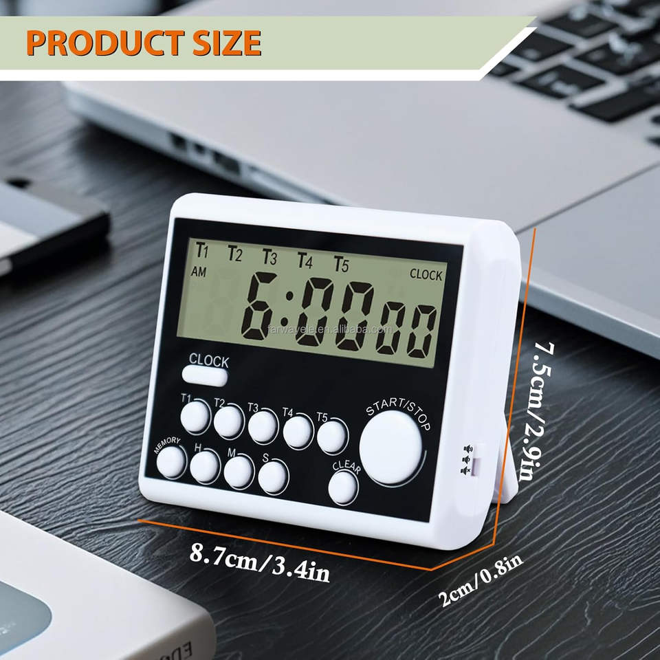 Minuteur de cuisine multi-tâches à 5 groupes, minuteur numérique à cinq événements, compte à rebours, minuteur de poche, fixation magnétique