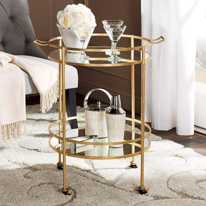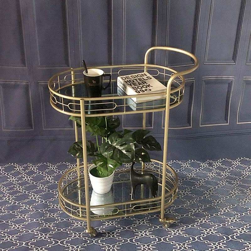 Chariot de service multi-niveaux en fer doré avec étagères en verre, chariot roulant avec roues pour la maison, la cuisine, la salle à manger, le rangement des boissons
