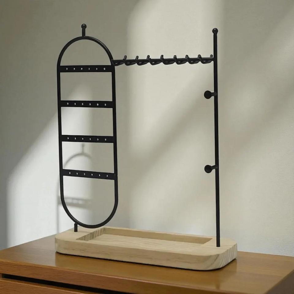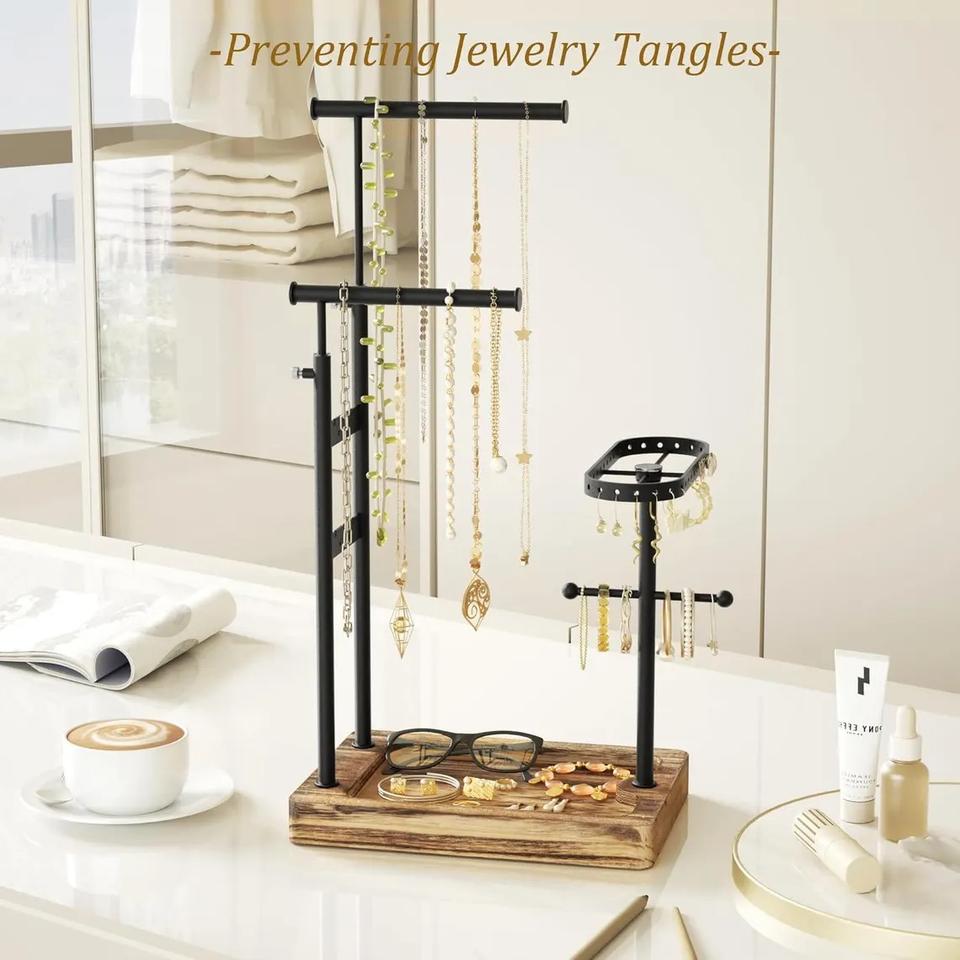 Présentoir à Bijoux Multi-Niveaux avec Barres pour Colliers, Panneau pour Boucles d'Oreilles, Support pour Bracelets, Base Spacieuse, Rangement de Présentation Haut de Gamme pour Coiffeuse