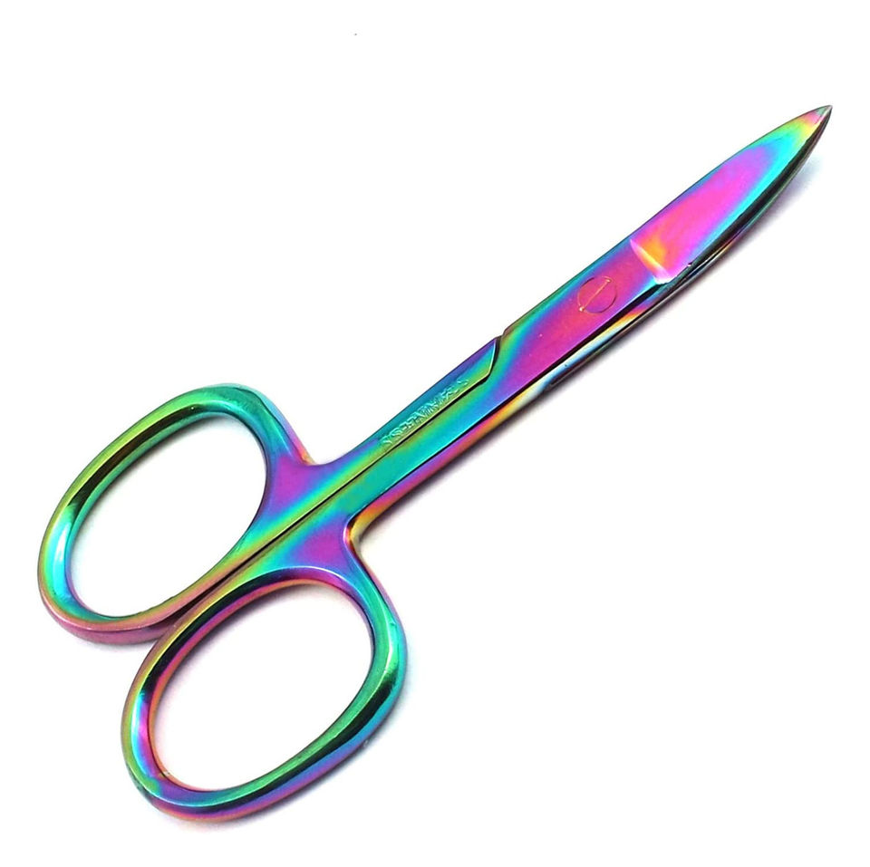 Ciseaux à cuticules en titane multicolores arc-en-ciel, droits et courbés, de haute qualité, en acier inoxydable, pour soins personnels, ciseaux de manucure