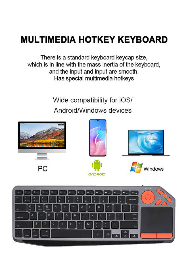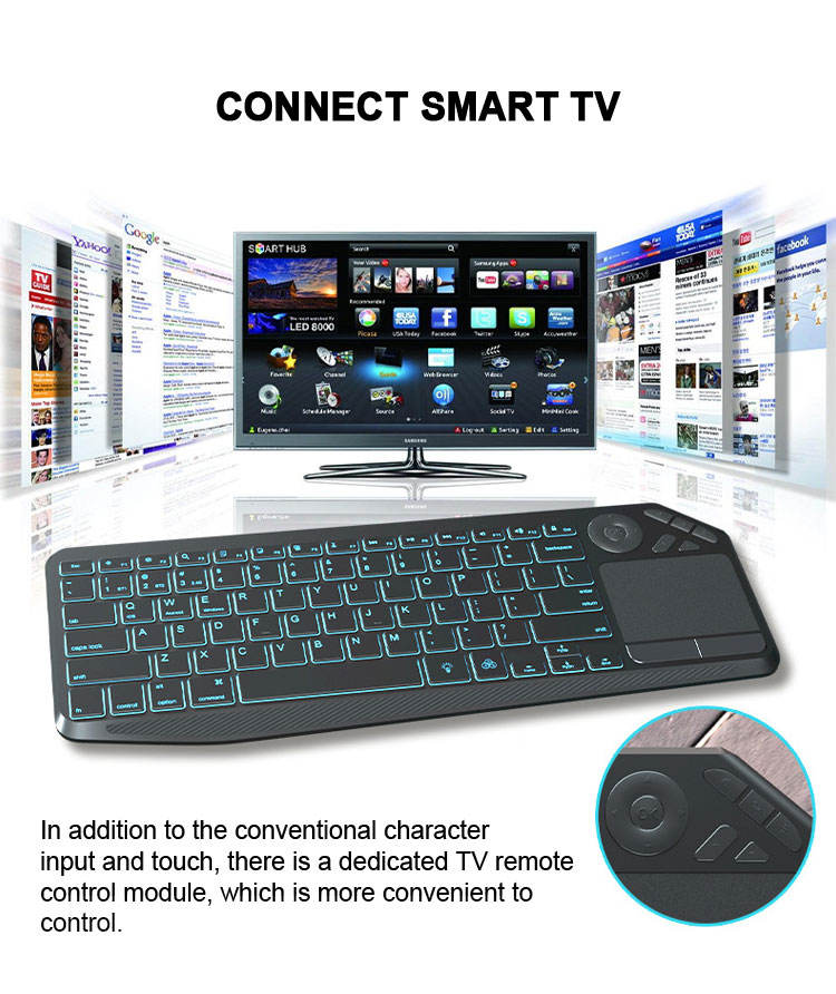 Clavier multimédia sans fil avec pavé numérique et pavé tactile multi-touch de grande taille, rétroéclairage couleur 3 LED, clavier rechargeable RGB