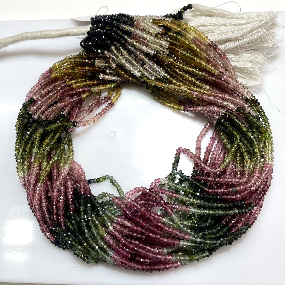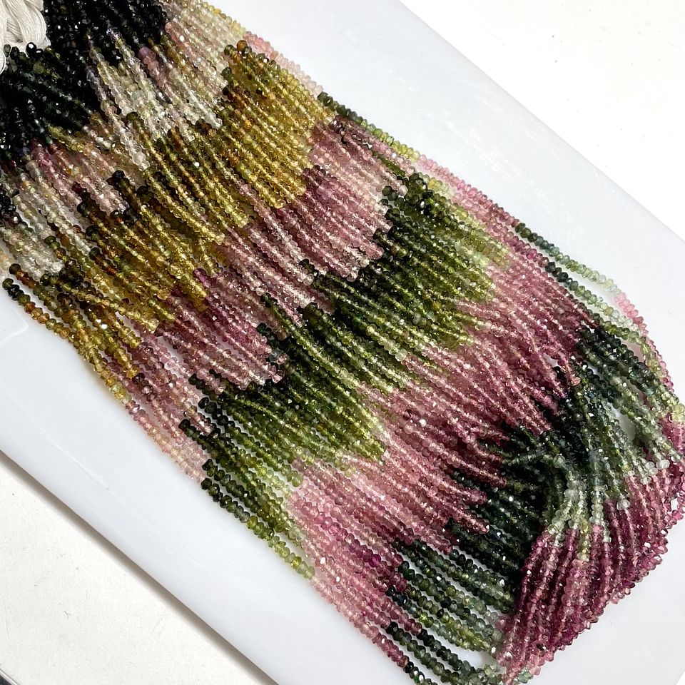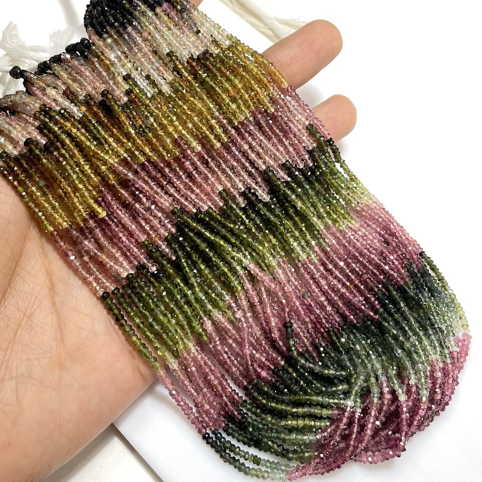 Perles de tourmaline multicolores facettées en forme de rondelle, qualité supérieure, pierres précieuses naturelles, perles en gros, perles pour la fabrication de bijoux