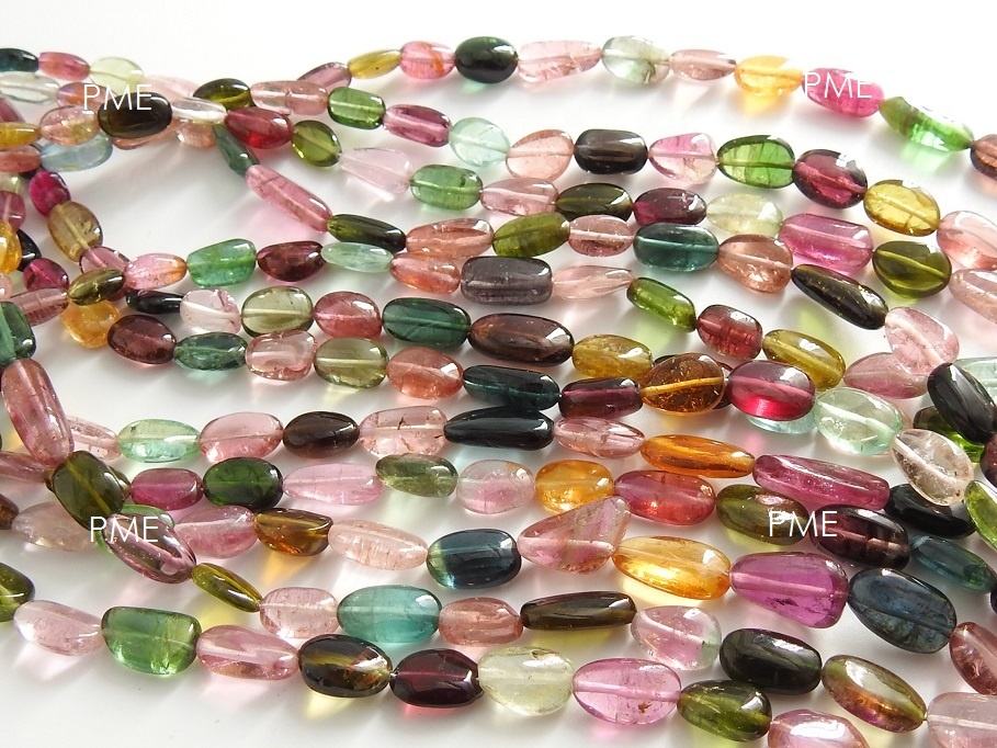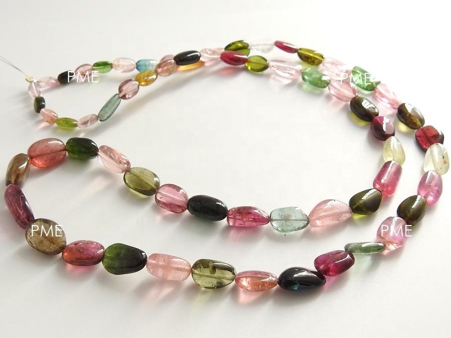 Tourmaline multicolore lisse, pierres naturelles en vrac, perles de pierres précieuses, 12 pouces, 6-10 mm de long, trou d'environ 0,35 mm, troisième qualité