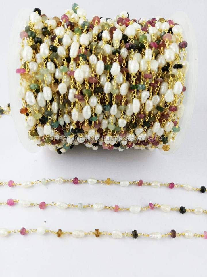 Multi Tourmaline and Long Pearl Gemstone Beaded ChainsName