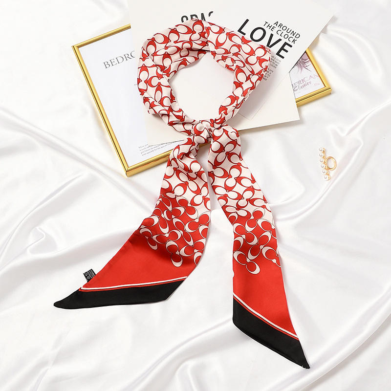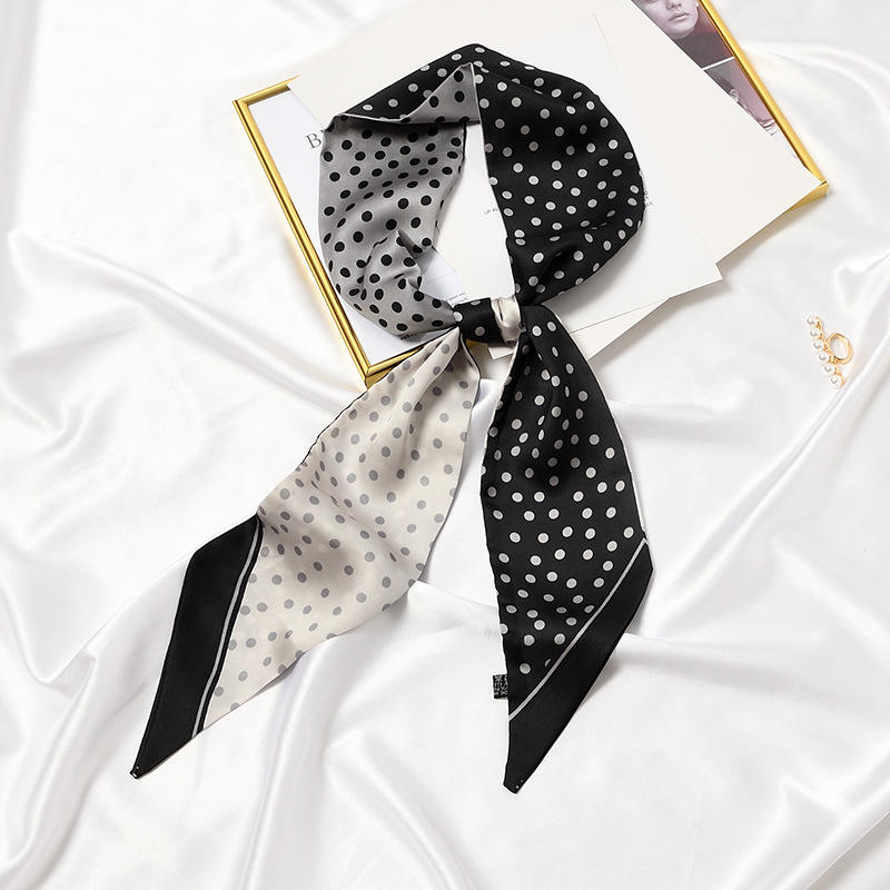 Écharpe longue et fine multi-usage pour femme – Idéale pour cheveux, cou et sac – Écharpe étroite en polyester respirante à motifs de feuilles et de pois
