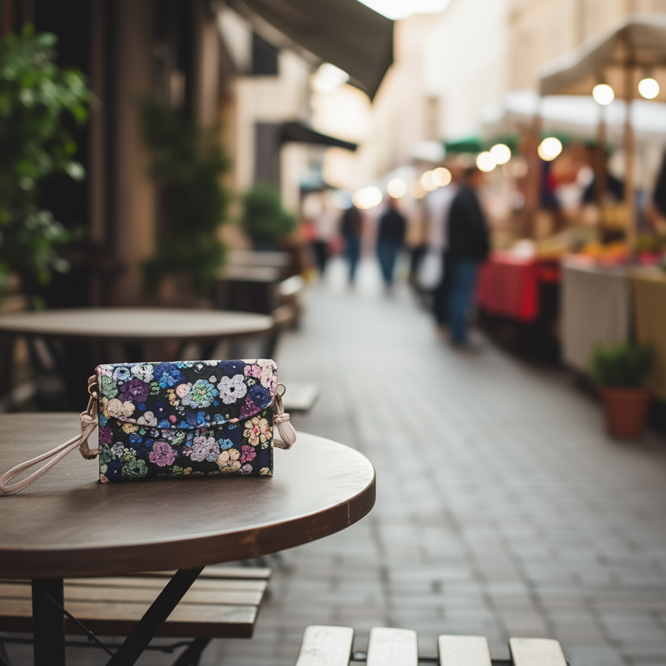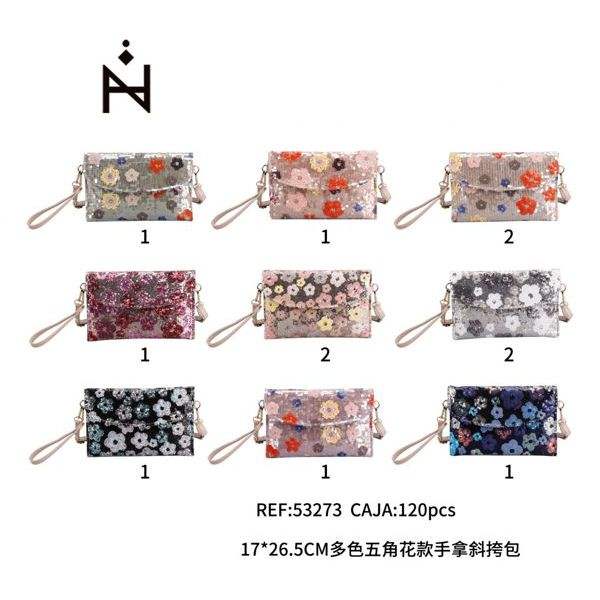 Sac à main/sac bandoulière 17*26,5 cm, motif floral multicolore à cinq pétales