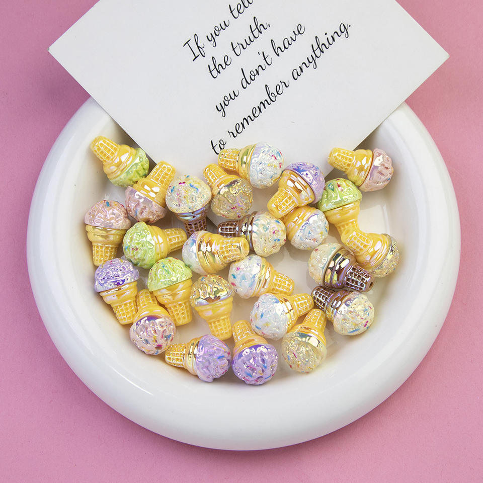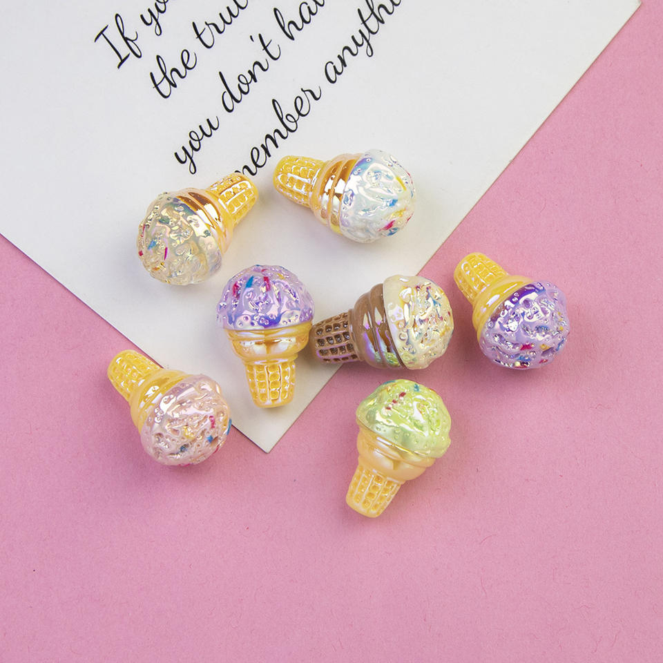 Perles en résine lucite multicolores irrégulières de la marque JC, accessoires faits à la main pour chaînes de téléphone portable, motifs sur le thème de la crème glacée