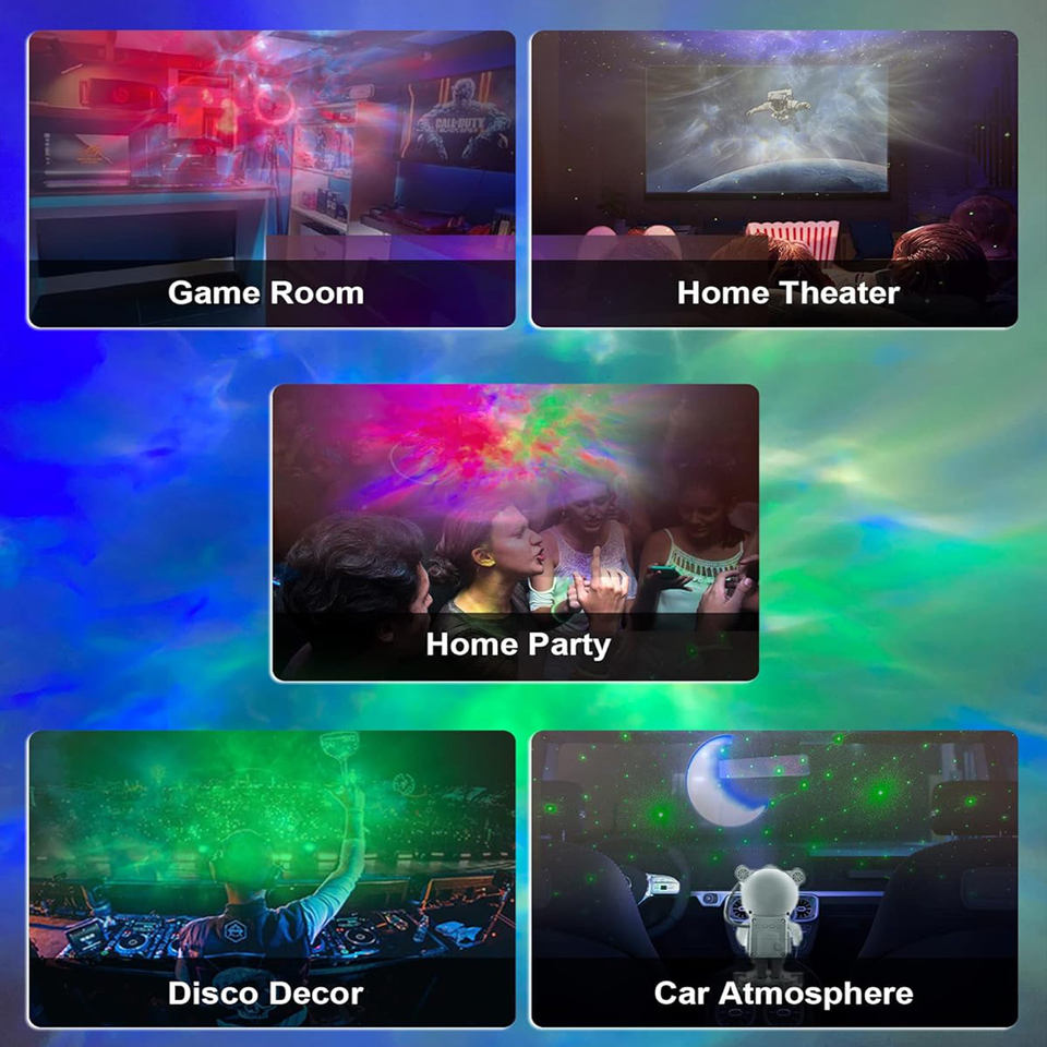 Lampe d'Astronaute Rotative Multicolore à Projection, Veilleuse LED Vague Océanique et Étoiles, Projecteur Galaxie Nébuleuse pour Chambre