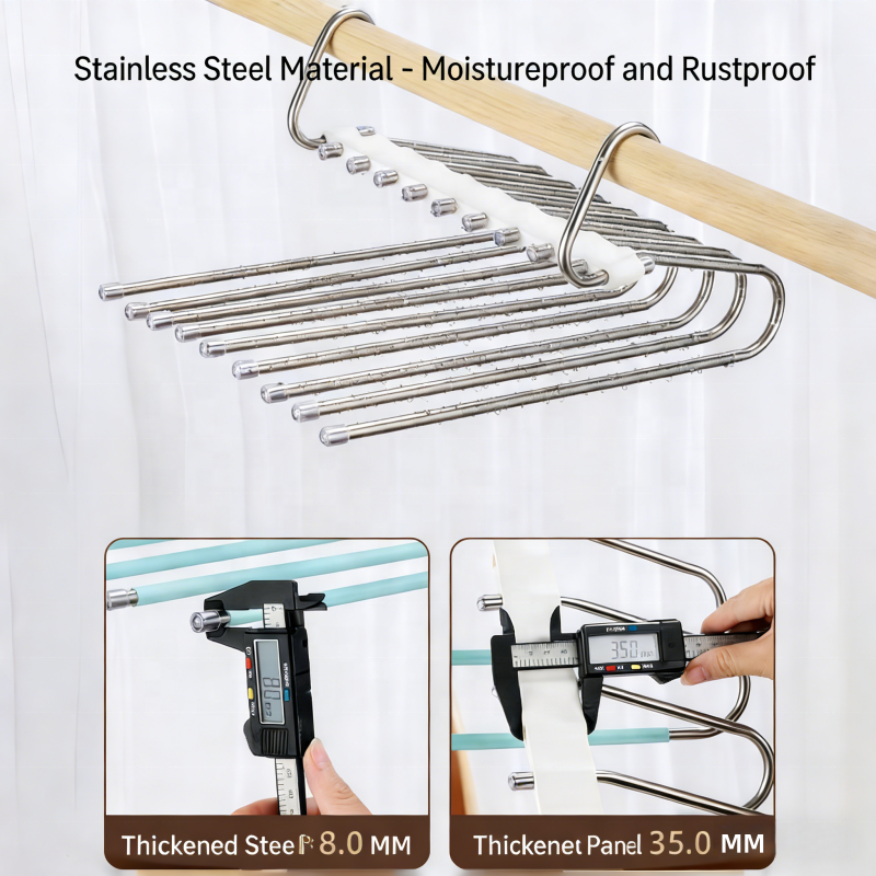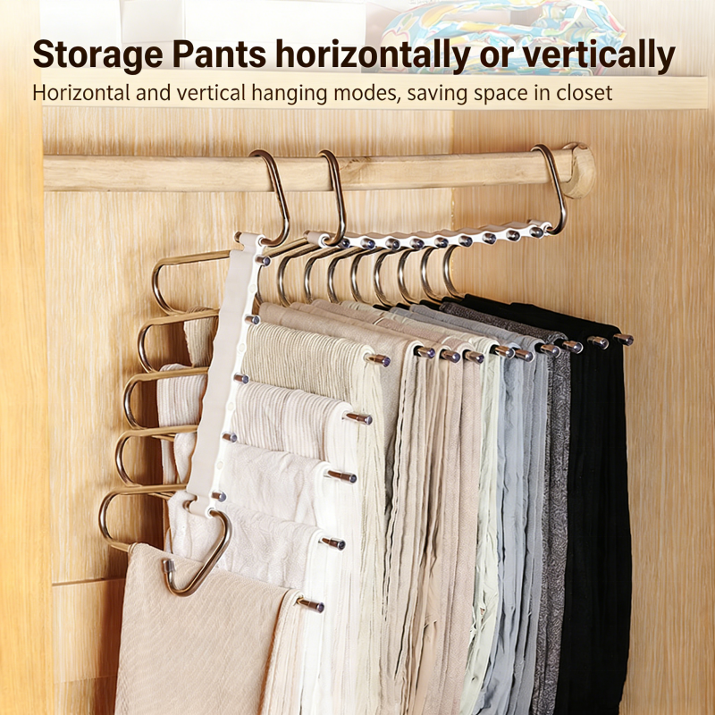 Porte-pantalons en acier inoxydable à forte capacité de charge, multicolores, pliable, 5 niveaux / 9 niveaux, double antidérapant, organisateur de pantalons pour la maison