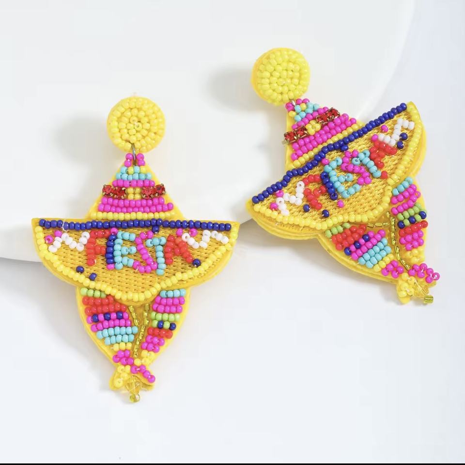 Nouveautés Boucles d'oreilles clous classiques unisexe en perles de verre faites à la main multicolores avec lettres, idéales pour les enseignants, les mariages et les fêtes