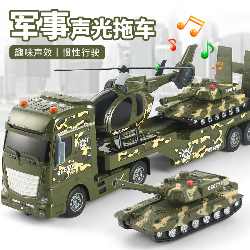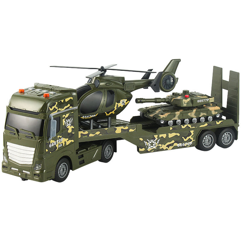 Char militaire multi-fonctions Hélicoptère Transporteur 3 en 1 Semi Transporteur Voiture Remorques Musique Lumière Inertie Jouet Cadeau Enfants Jouets