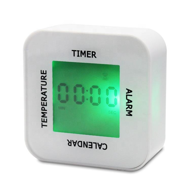 Multi-fonction rotation numérique alarme d'induction horloge calendrier température horloge de bureau à 4 côtés Rotation compte à rebours