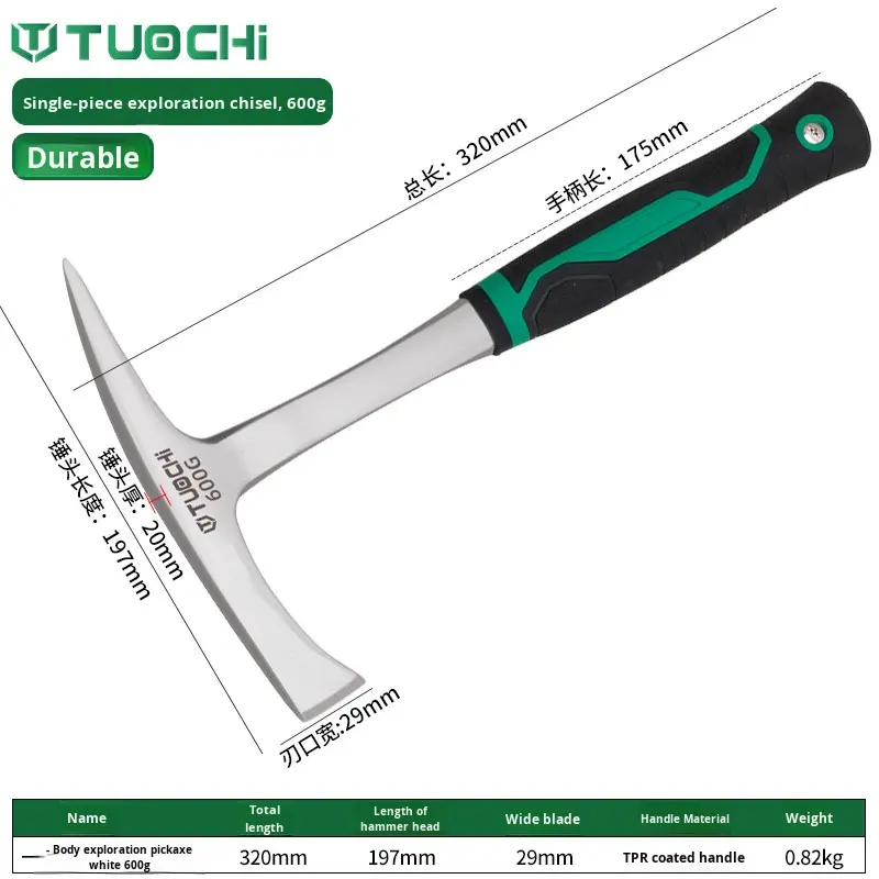 Marteau d'exploration multifonction, pioche, fendeur de bois de chauffage d'extérieur, outil d'exploration géologique, alpinisme, une seule pièce