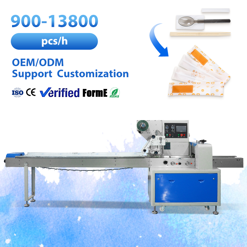 Machine d'emballage multifonctionnelle Flow Pillow pour couverts (cuillères, fourchettes, couteaux) et serviettes, machine d'emballage automatique pour la restauration