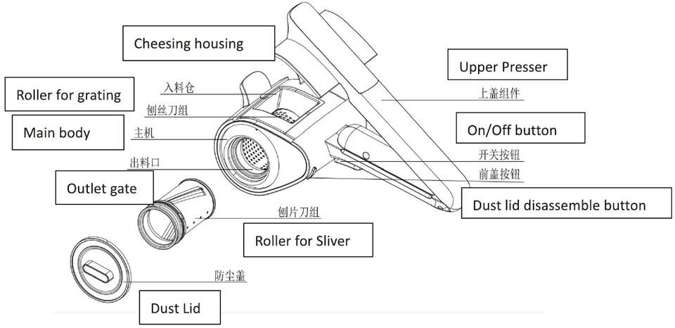 Electric, Rotary, Handheld, Automatic Cheese Grater