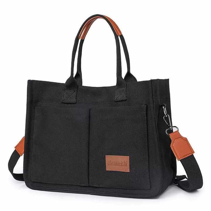 Sac fourre-tout multifonctionnel en toile pour ordinateur portable Sac à main pour dames Compartiments Sac à main Sacs à bandoulière Poches Cartables Sacs