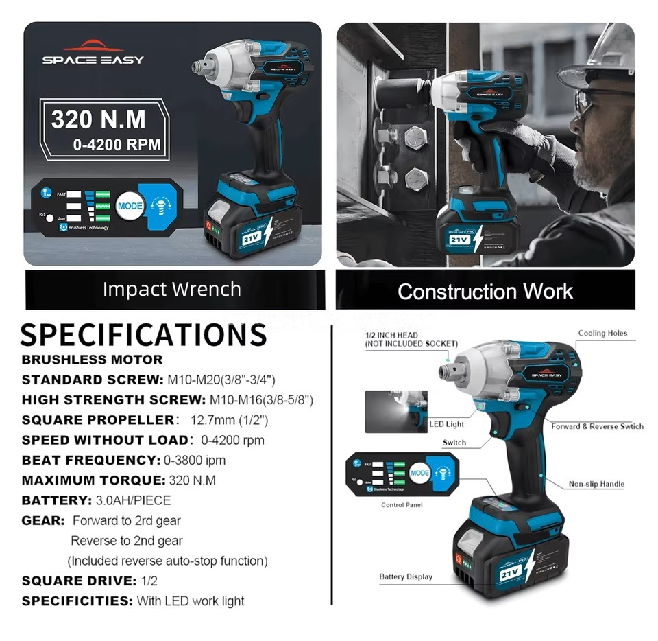 Perceuse électrique, Meuleuse d'angle, Batteries, Scie électrique, Clé électrique, Clé à molette d'impactOutil Comprend