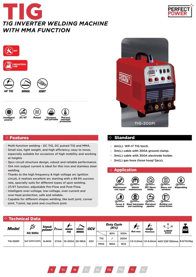 Modèle:TIG-200PI Tig Machine à souder
