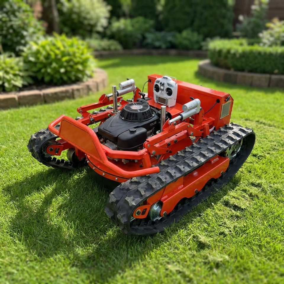 Tondeuse à gazon multifonctionnelle 4 temps DIY sur chenilles, télécommande intelligente, désherbeur rotatif à 360 degrés, tondeuse à gazon à essence pour jardin