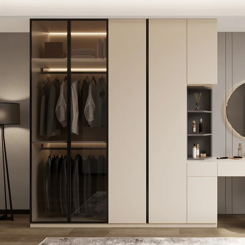 Ensemble Coiffeuse et Armoire de Chambre Multifonctionnel Moderne et Minimaliste, Combinaison Coiffeuse et Penderie Intégrée
