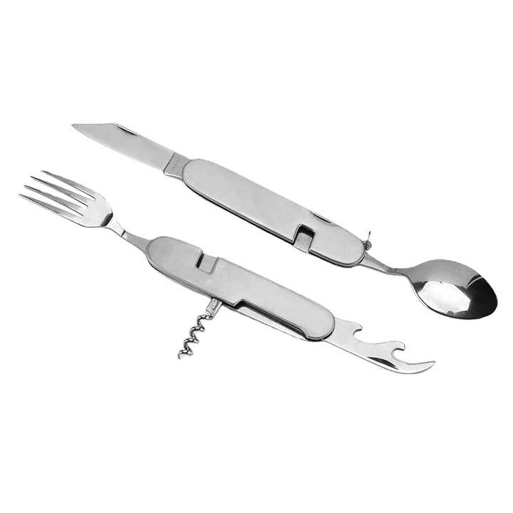 Ensemble de couverts multifonctionnels en acier inoxydable pour le camping, 3 en 1, vaisselle portable, couverts de voyage, cuillère, fourchette, couteau de poche
