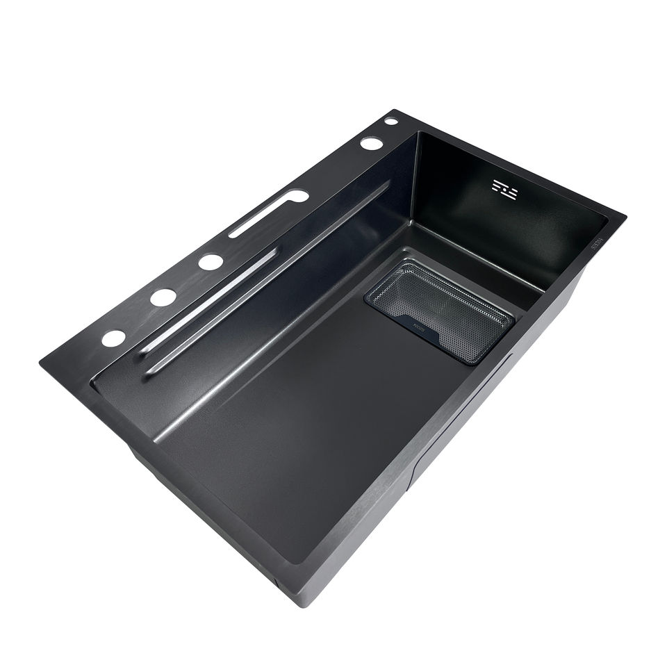 Évier de cuisine multifonctionnel en acier inoxydable fait main à cuve unique avec robinet, affichage numérique piano, design moderne noir pour comptoir