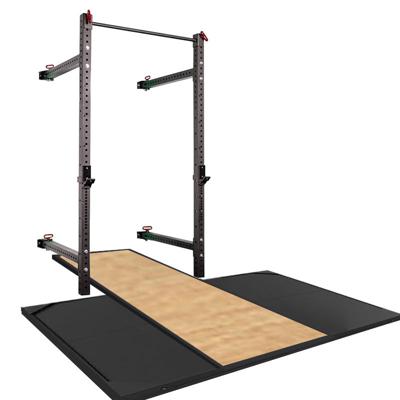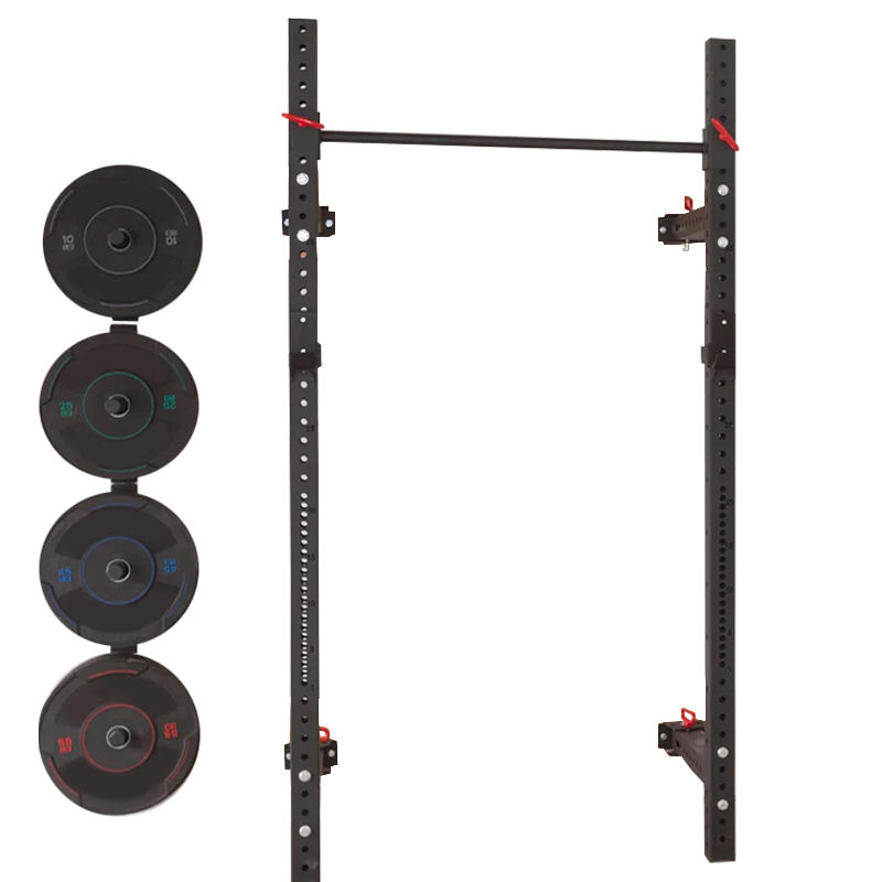 Support mural pliable pour squats et tractions, avec plateforme pour le soulevé de charges