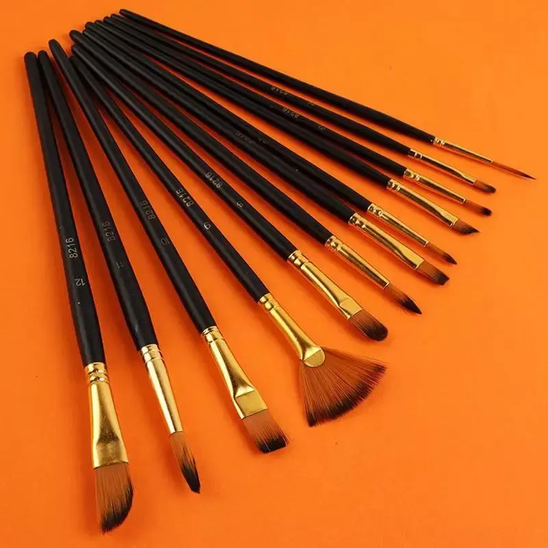 Ensemble de pinceaux de peinture à l'huile multifonctionnels, aquarelle, gouache, 12 pièces, manche en bois court, outil d'art, débutant, poils en nylon, matériaux acryliques