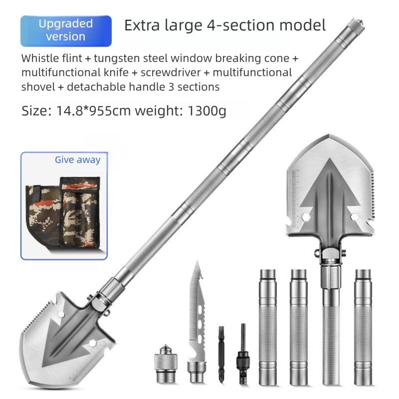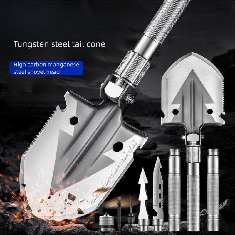 Pelle multifonctionnelle avec boussole pour le camping, la pêche, la voiture, les activités de plein air, le démarrage du feu, la brise de vitres et le creusement au sol