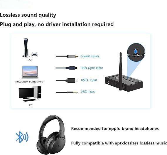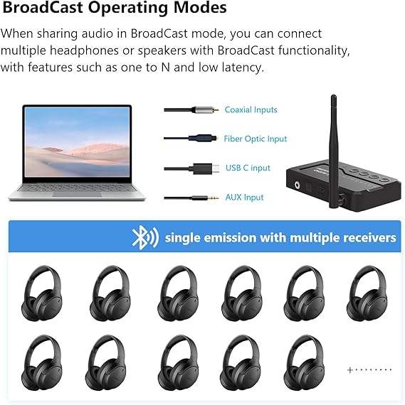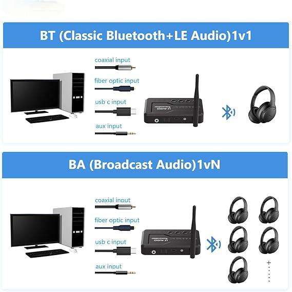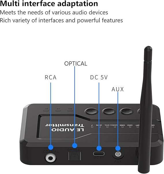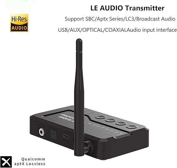 Transmetteur audio LE sans fil HD multi-interfaces V5.4 pour TV Auracast Aptx Lossless/Adaptive LE Audio Adaptateur Bluetooth