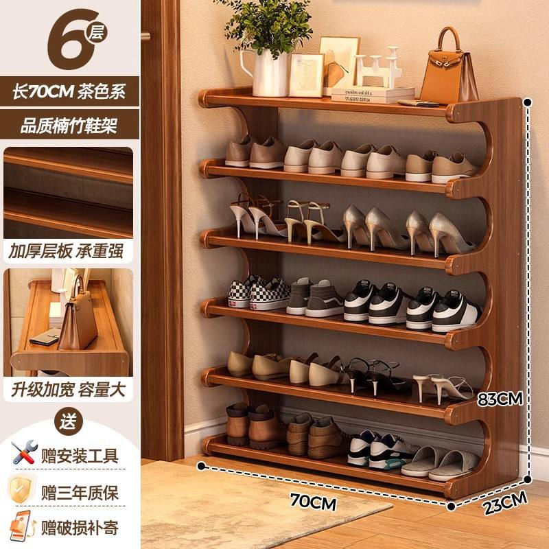 Étagère à chaussures multi-niveaux classique en bambou et panneaux composites, détachable, pour cuisine, salon, garage, salle de bain - Rangement étroit
