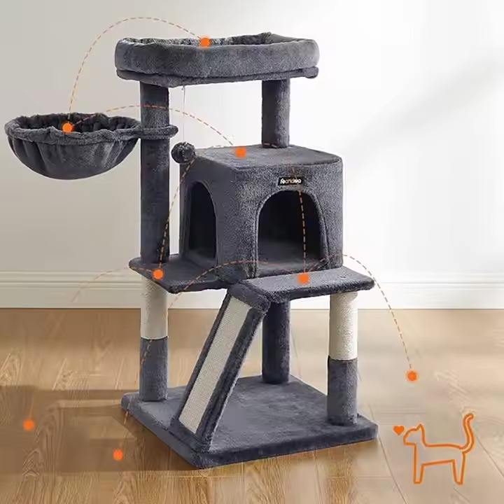 Tour pour chat à plusieurs niveaux Grand support d'escalade pour chat avec perchoir en peluche Jouets pour le jeu et le repos