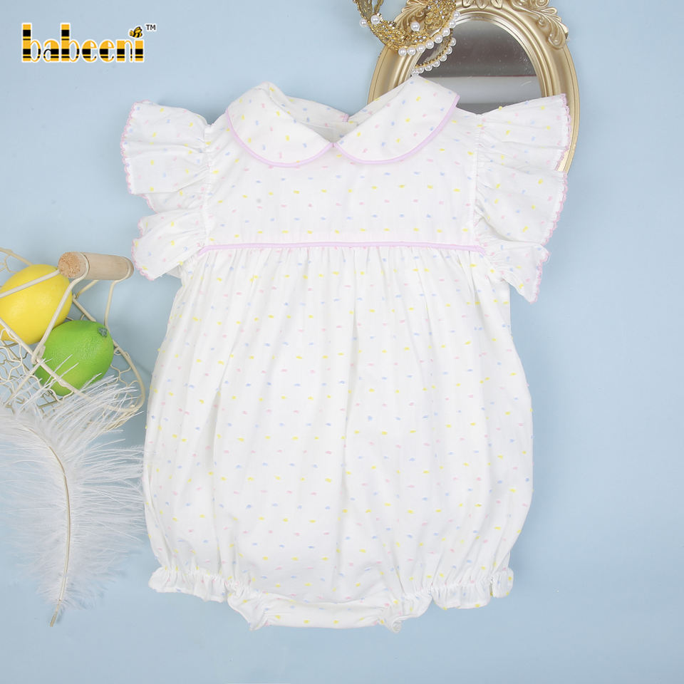 Ensemble barboteuse smockée à pois multicolores pour bébés filles, collection Printemps, 100% coton biologique certifié OEKO-TEX, non toxique et ignifuge