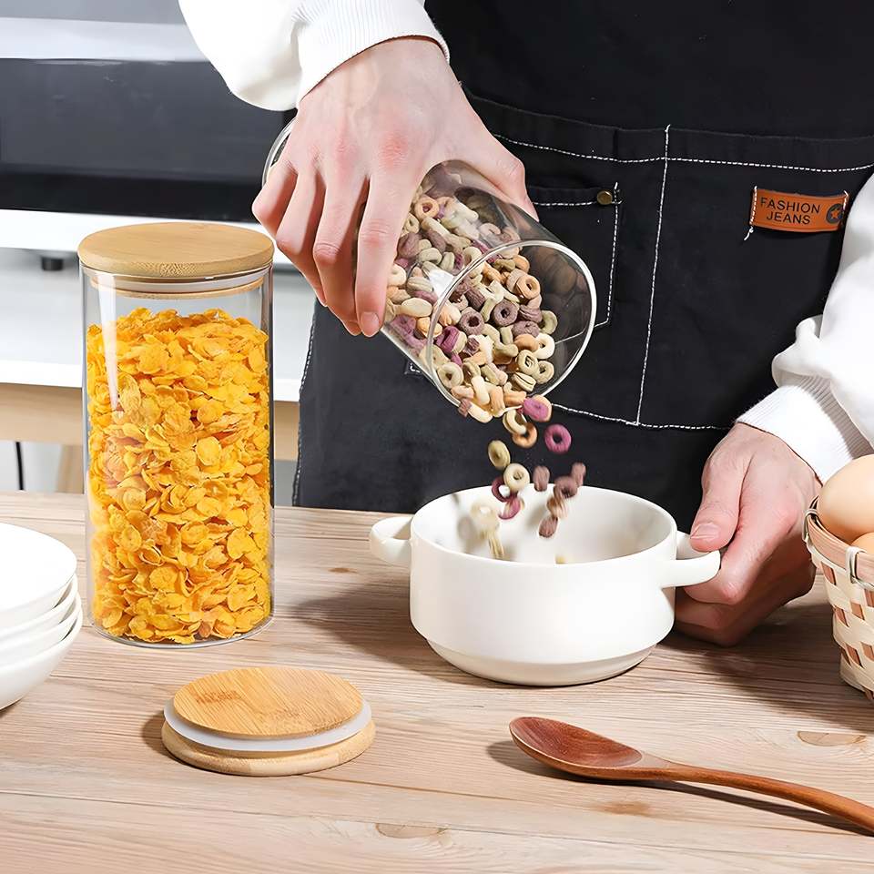 Contenants de stockage alimentaire en verre multi-tailles 250-2000 ml avec couvercles en bambou, ensemble d'organisation de cuisine hermétique