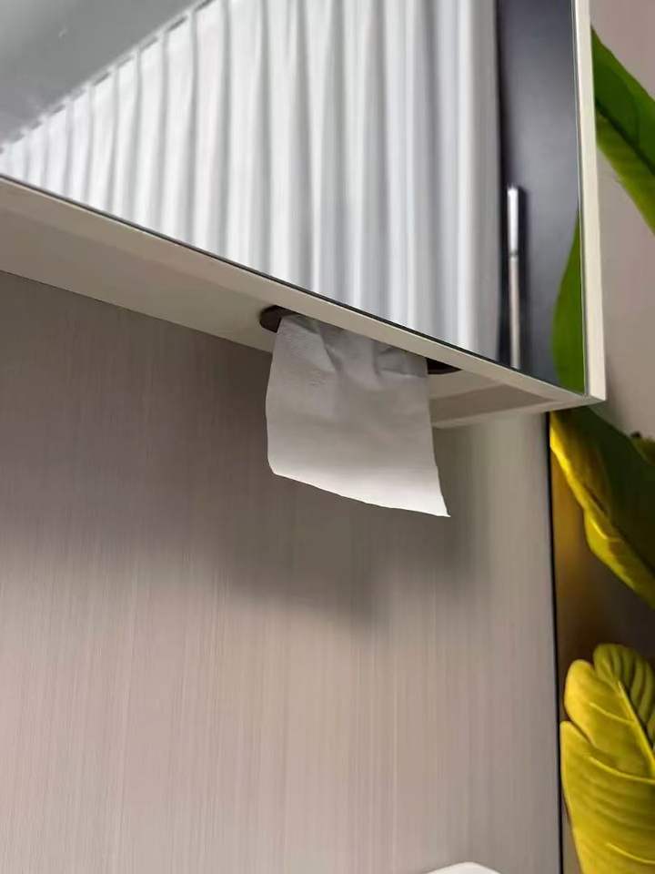 Meuble-lavabo multi-espaces avec miroir, éclairage LED monochrome intégré et trou pour mouchoirs, blanc