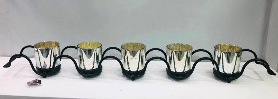 Chandelier décoratif en métal et verre à plusieurs niveaux avec porte-lumière Bougeoirs élégants Lanternes et bocaux