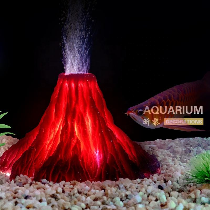 Multi-tailles En Résine D'aquarium Volcan Ornement Avec Led Colorée D'air Barboteur Décorations pour Aquarium