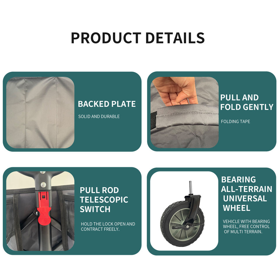 Chariot de chariot pliable à cadre en acier multi-terrains Chariot de chariot pliant pliable avec poignée d'extension