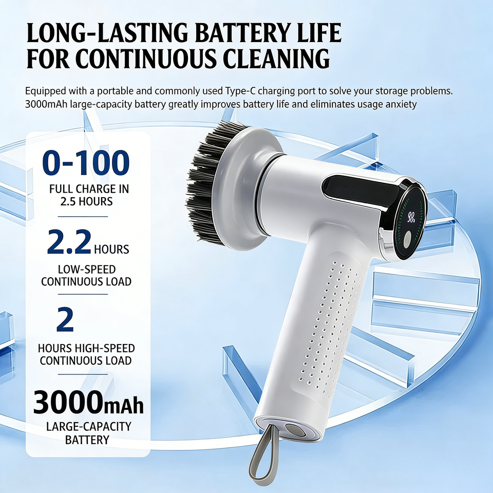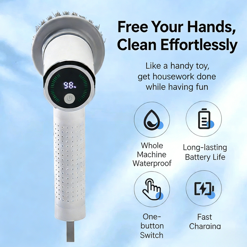 Brosse de nettoyage électrique multifonctionnelle avec têtes remplaçables, réglage à 2 vitesses