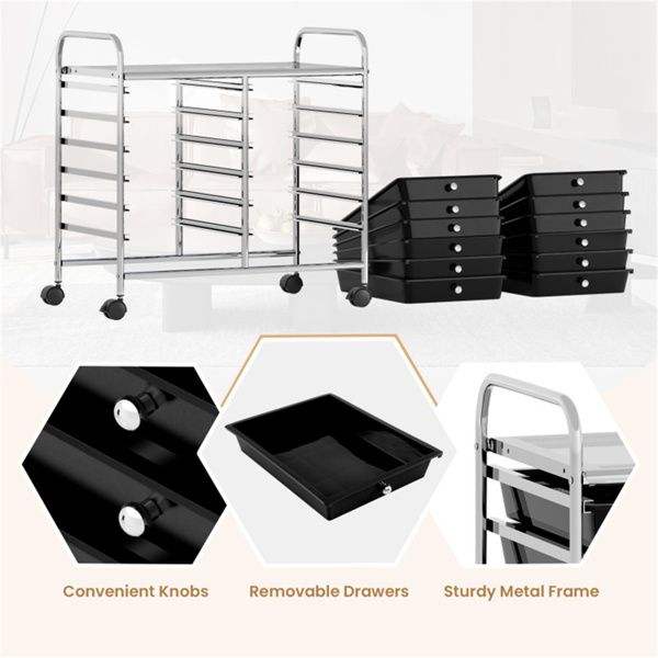 Multicolor 12-Drawer Rolling Storage Cart with 4 Wheels (2 Brake) 10 Storey 2 Row Black Base