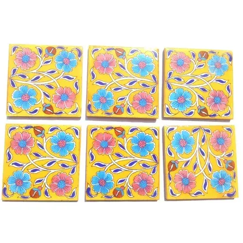 Lot de 6 carreaux décoratifs en céramique multicolores 4X4 ''faits à la main-Poterie bleue-Cadeau
