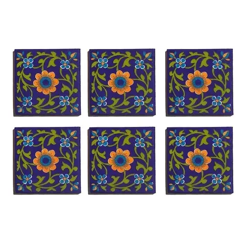 Lot de 6 carreaux floraux décoratifs multicolores de 4x4 po en céramique pour mur et sol, matériau en Pocelain pour salle à manger et chambre à coucher