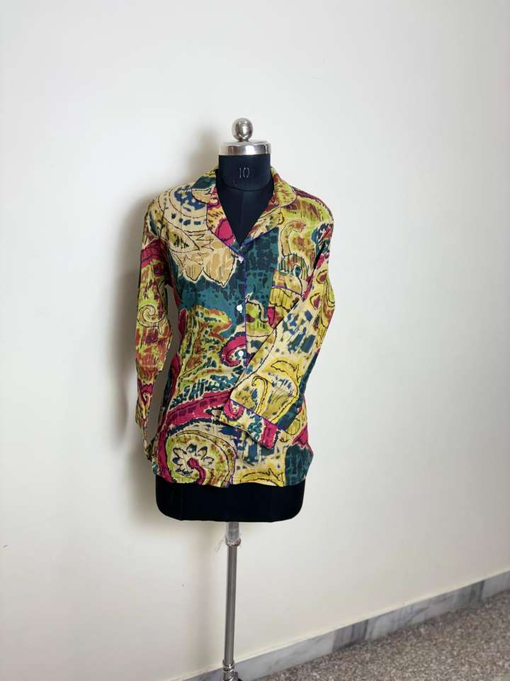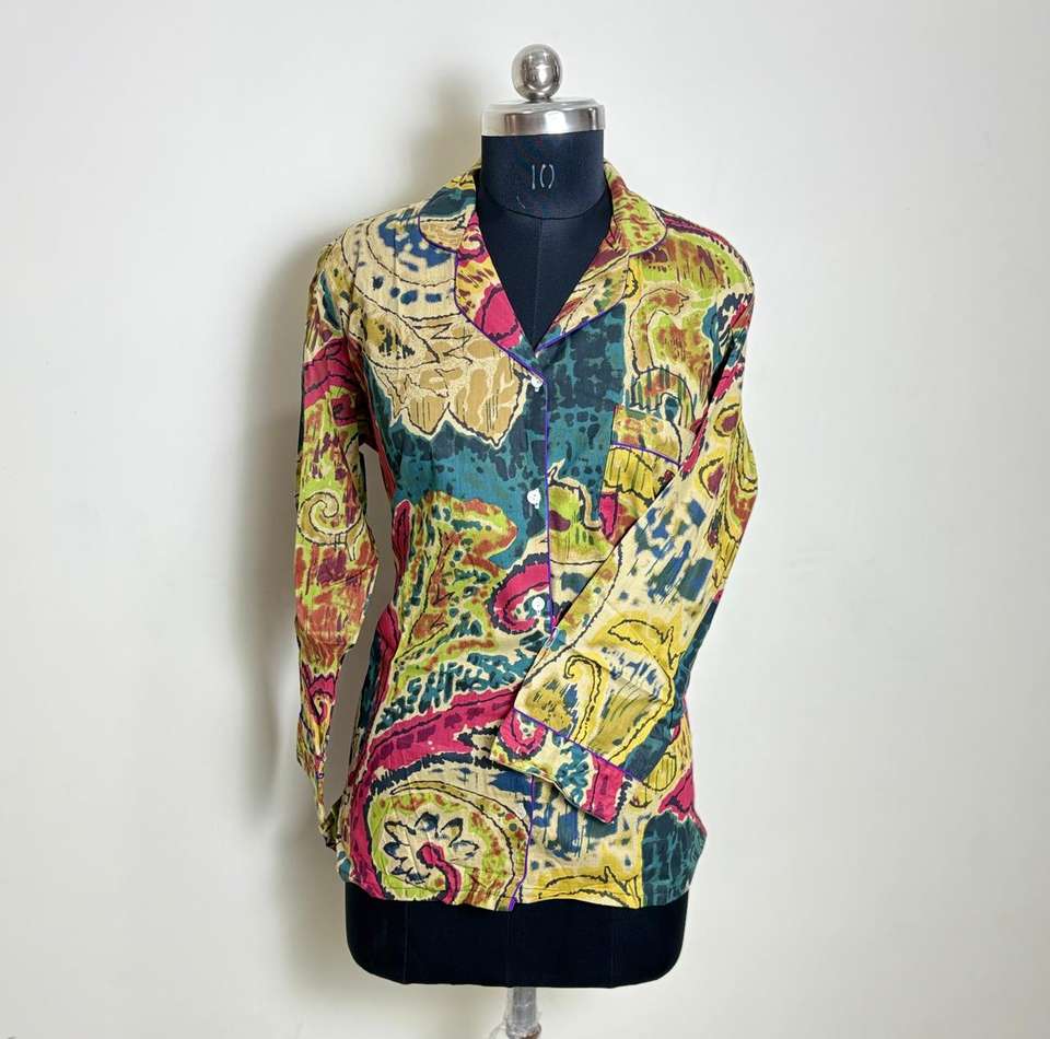 Chemise en coton à imprimé abstrait multicolore pour femmes Chemise imprimée décontractée à manches longues Designer Artistic